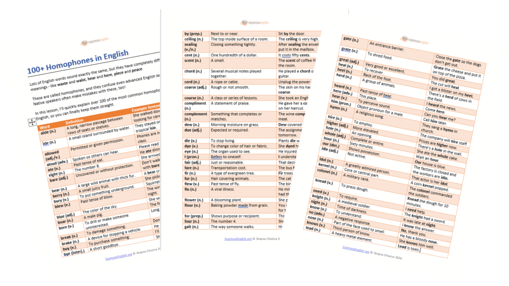 In this lesson, I’ll quickly explain over 100 of the most common homophones in English, so you can finally keep them straight.
