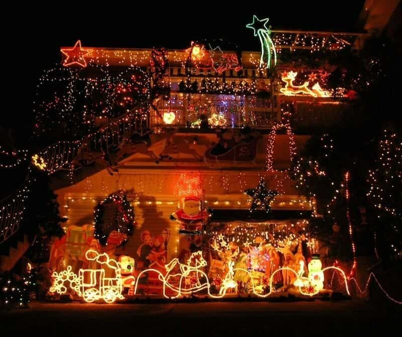 The lights that people put on their lawns and houses during Christmas are called Christmas lights.