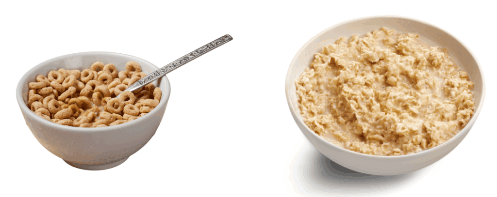 Children often eat cereal, of which we have many different kinds – some healthier than others. One healthy option is oatmeal – that’s often topped with raisins or brown sugar.