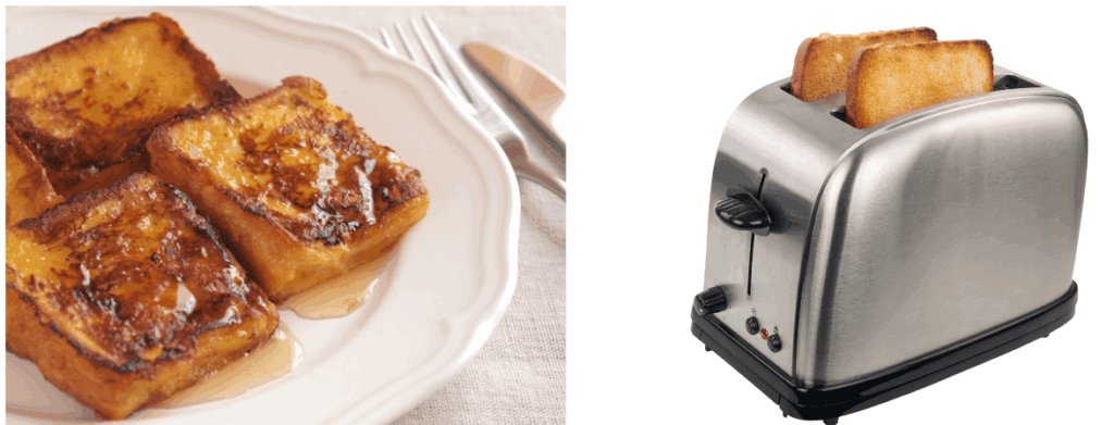 But you can make French toast – that’s bread dipped in egg and milk and then fried. You can then top it with cinnamon and sugar. Or you can make regular toast – just heating the bread and then putting butter or jelly on it.